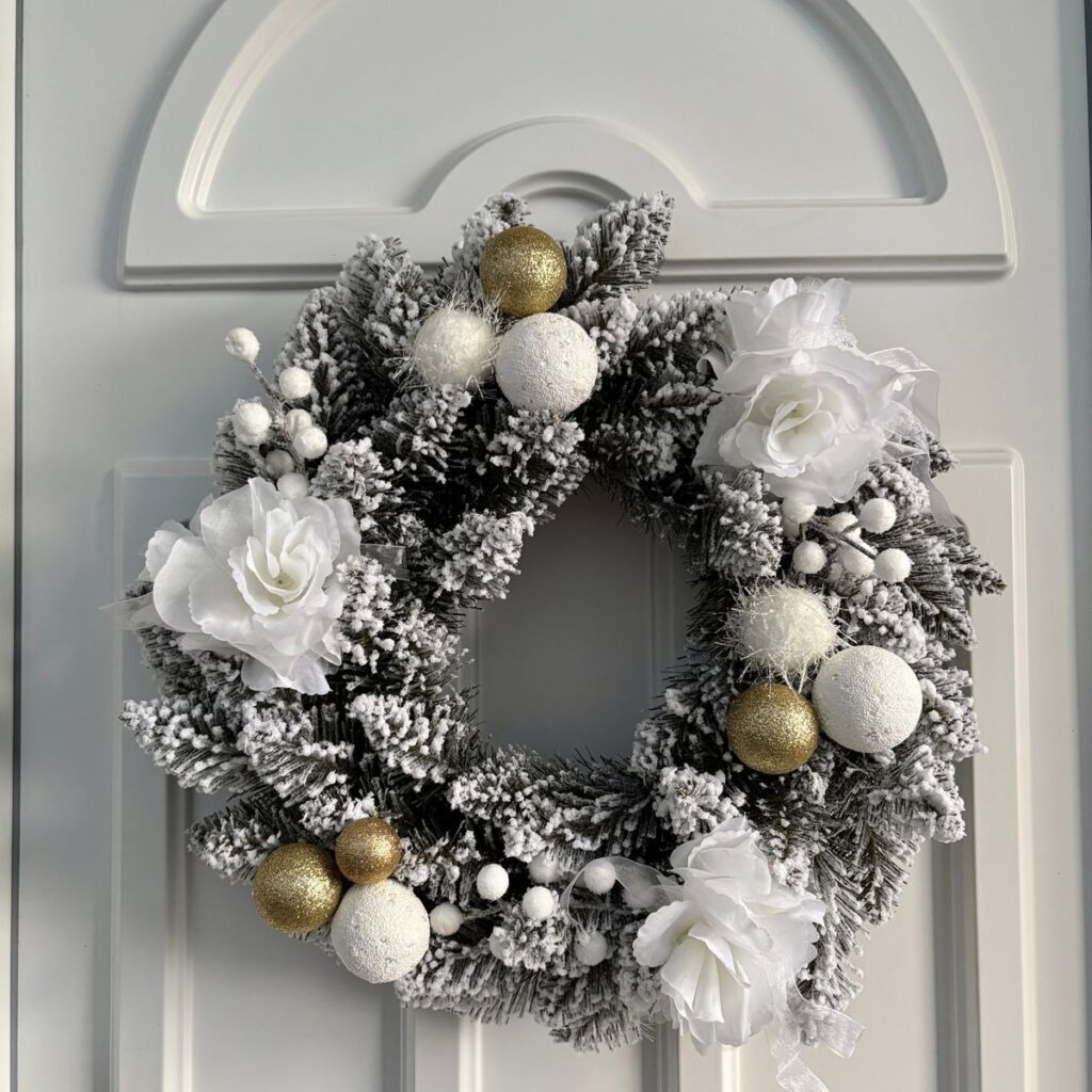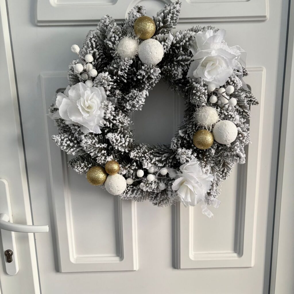 Ta beli božični venec je primeren kot okras za mizo, vrata in lahko polepša tudi vaš zid ali kamin.