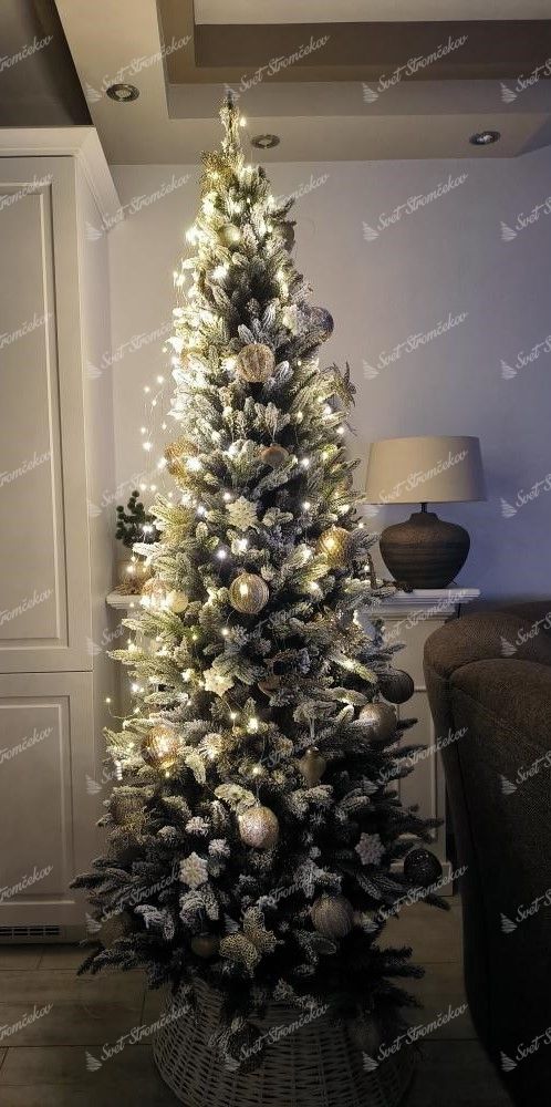Stilsko božično drevo 3D kraljevska ozka smreka je ožja različica enega naših najbolj priljubljenih zasneženih božičnih dreves – 3D kraljevske smreke. To ozko zasneženo 3D drevo ima edinstven ledeni videz in obliko popolne piramide. Zaradi njegovih ozkih dimenzij ga lahko uporabite za božično dekoracijo v bolj tesnih prostorih.