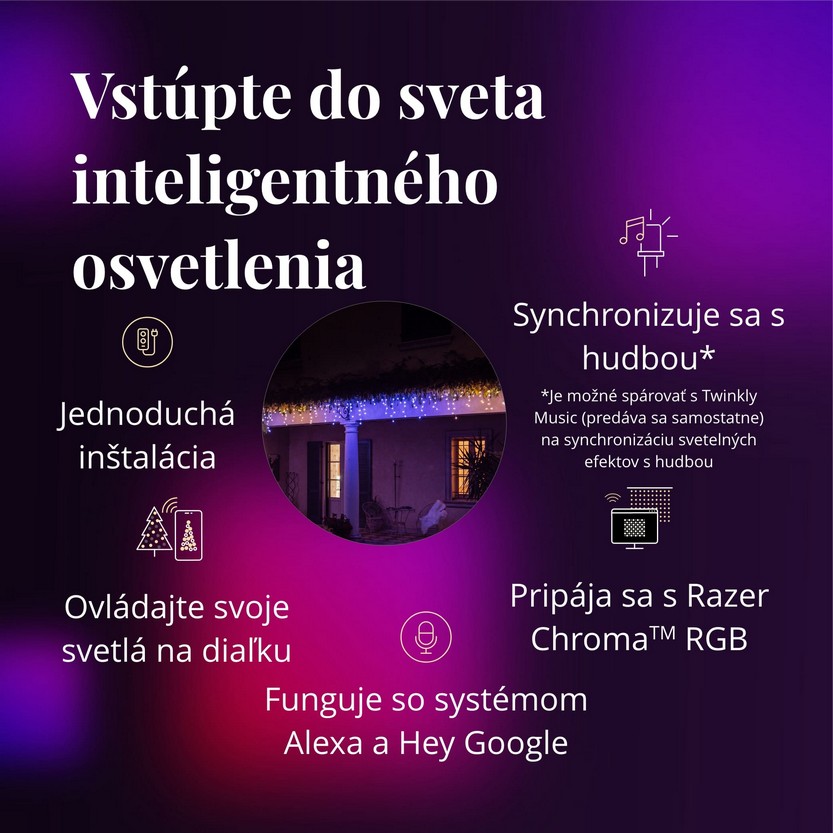 Razsvetljava vsebuje 50 LED kapljic z vzorcem. Ledene sveče je mogoče sinhronizirati z drugimi izdelki TWINKLY, kar zagotavlja povsem estetsko svetlobno predstavitev.