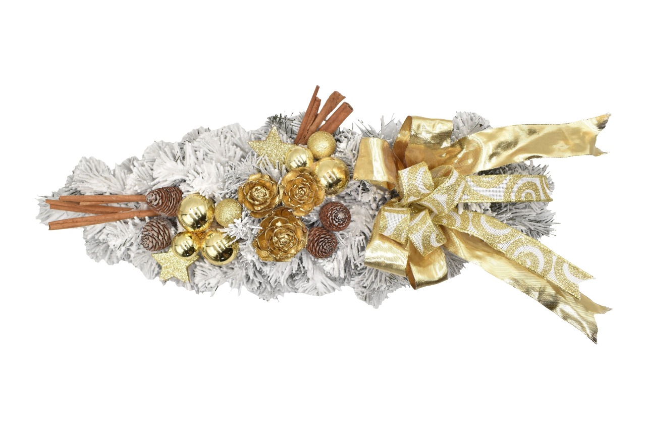 Okrašena zasnežena girlanda za sredino mize Zlata 55cm