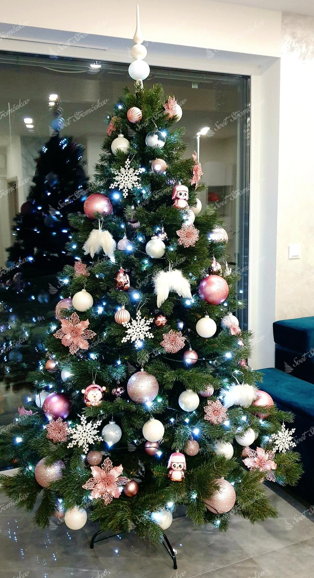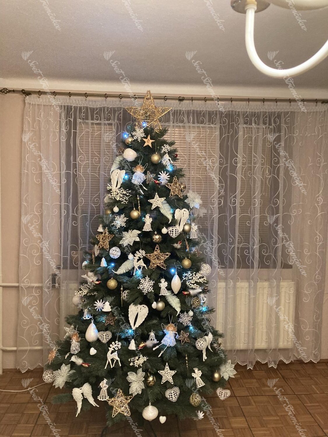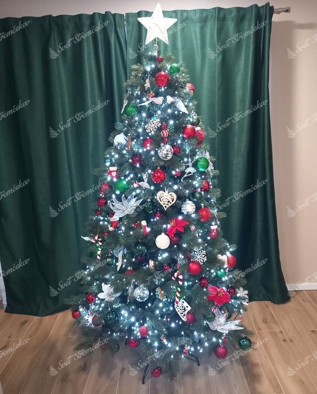 Za izdelavo drevesa se uporabljajo najkakovostnejši PE in PVC materiali, zaradi katerih vam bo lahko služil desetletja. Za popolnejši in bolj puhast videz središče drevesa dopolnjuje klasičo PVC igličje.