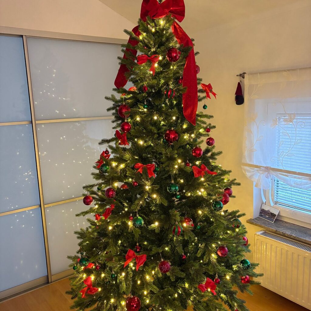 Prezadovoljni smo naručenom jelkom – gusta, bogata, lijepo raspoređene lampice, izgleda skroz prirodno. Preporuka svima.