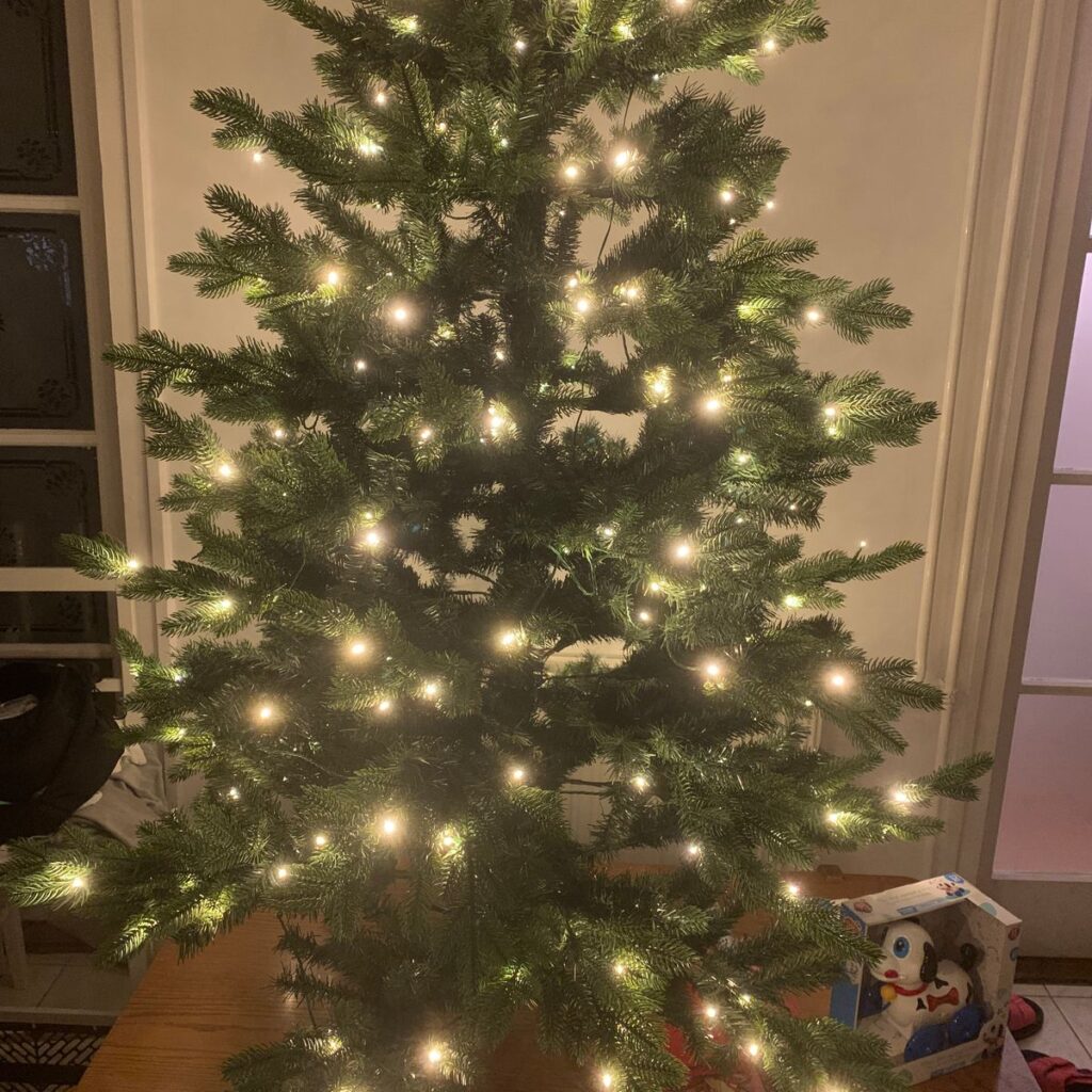 Könnyű összeállítás, dús fa, szépen elhelyezett égők