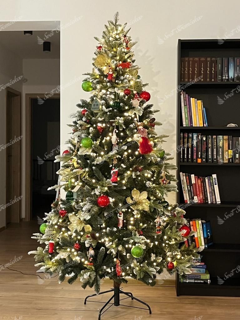 Poleg 3d igličja drevo dopolnjuje še klasično PVC igličje, ki je na koncih tudi zasneženo in tako odlično posnemaj živo zasneženo drevo. Kakovostna železna konstrukcija in stabilno železno stojalo sta del paketa.