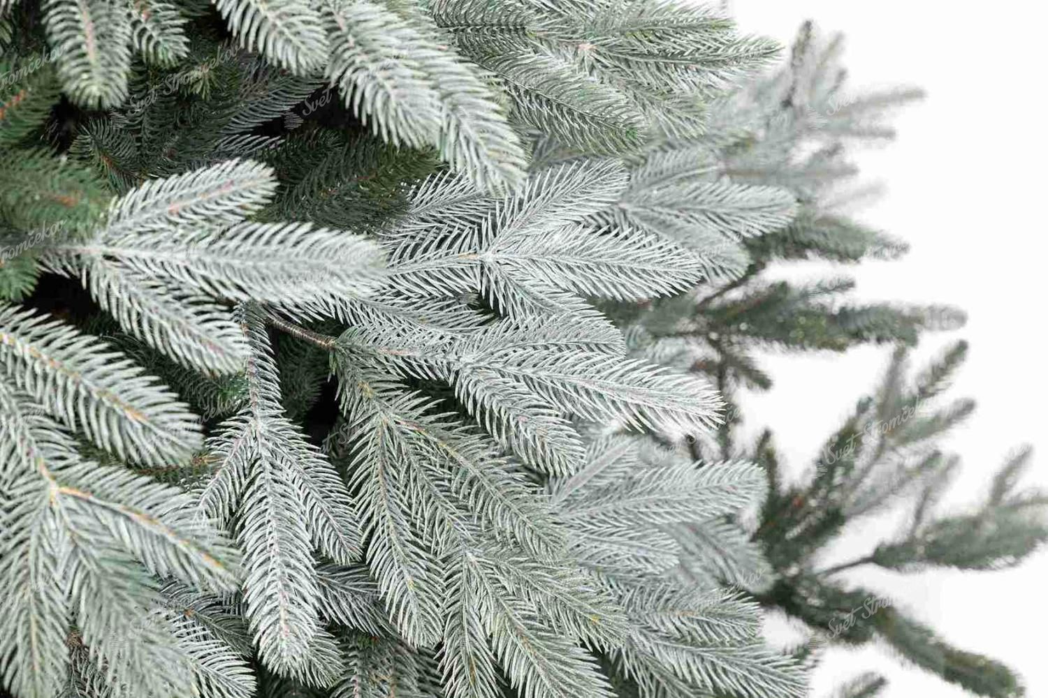 Edinstven dvobarvni učinek iglic – temno zelene v notranjosti drevesa in srebrne na koncih vejic – ustvarja očarljiv kontrast, ki spominja na nežno zasnežene vejice. Ta podrobnost daje drevesu eleganten in svež zimski videz.