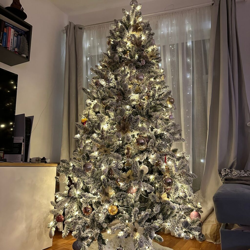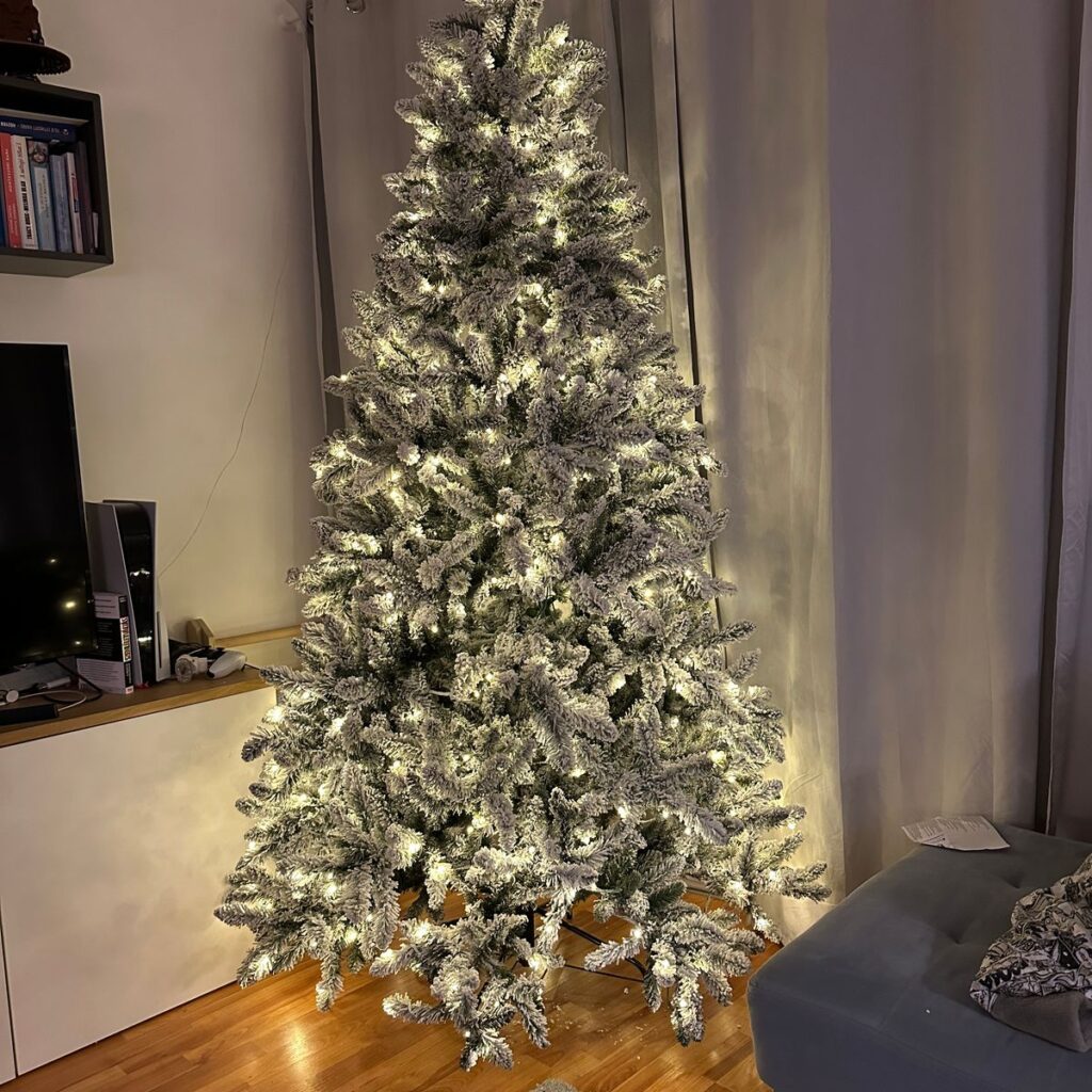 Umetno božično drevo Nordijska smreka z LED osvetlitvijo z zasneženim videzom bo zagotovo pričarala pravo božično vzdušje v vašem domu.